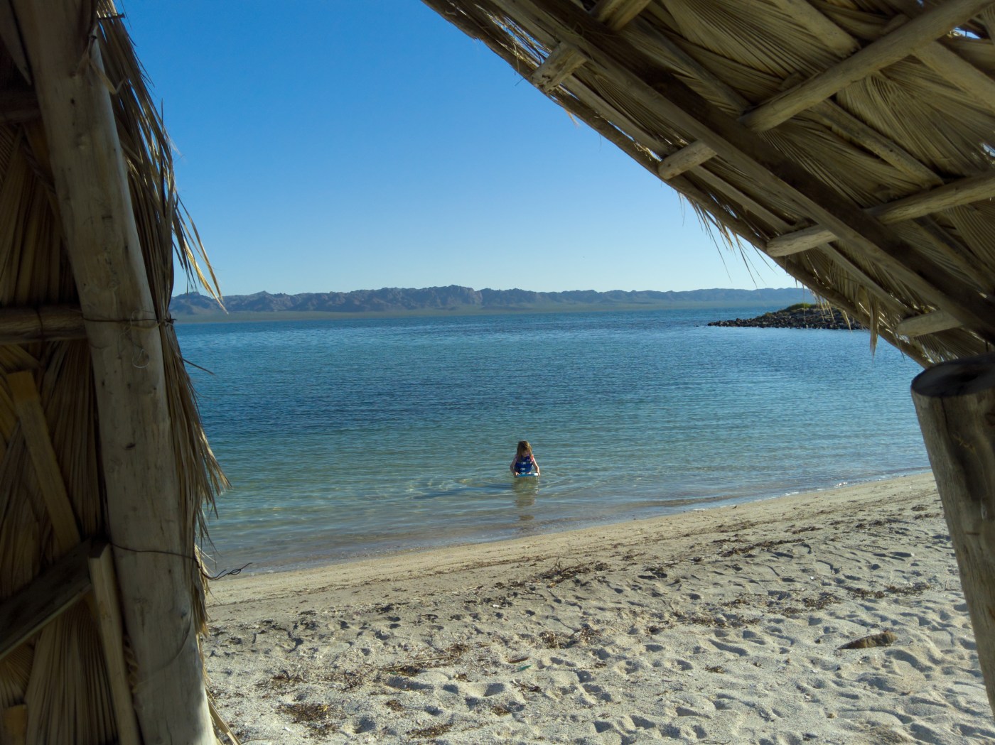 A surfer at Cuatros Casas told us he recently drove down to Baja with his family and camped at Bahia Conception and they had a simply amazing time. He described how to find the secluded camp site and palapas where they stayed. We decided to take his recommendation and head there to get a bit more flat-water fun time for Nina and Ted and view this breathtaking turquoise water he talked about.