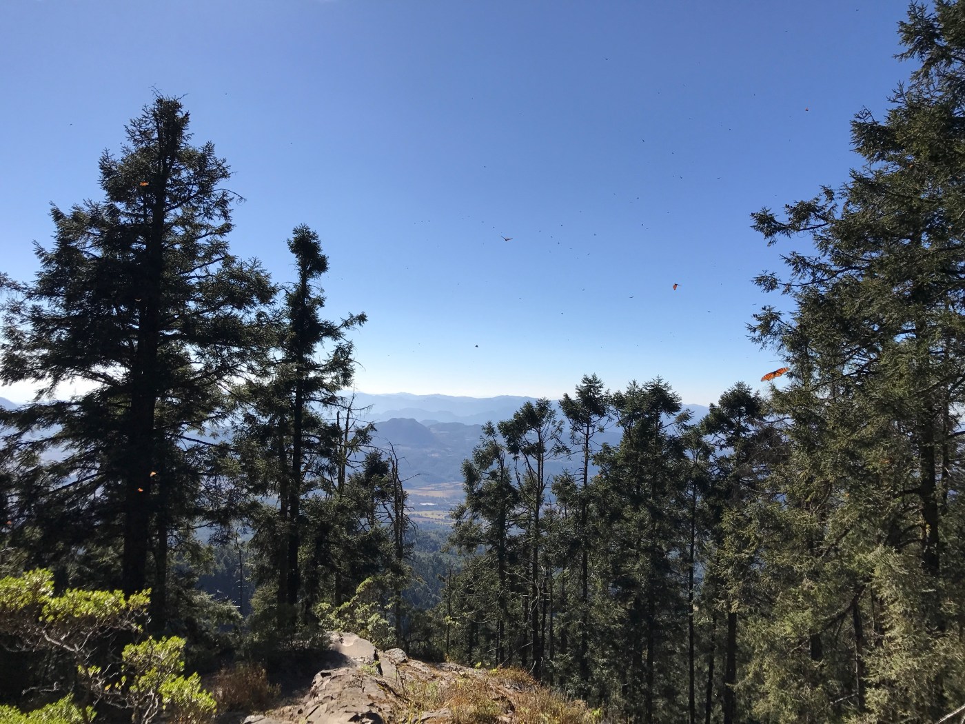 A dose of Sudafed got me straightened out, and early afternoon we made the short 2km drive to the sanctuary hike start. There we learned Ted was not allowed to join us, so he went back to the truck. We were assigned a guide, then hiked about an hour or so deep into the sanctuary where the Monarchs were straight up swarming. They were so thick, and the views through them so spectacular! It was a very special, quiet moment. Even Nina was deferential.