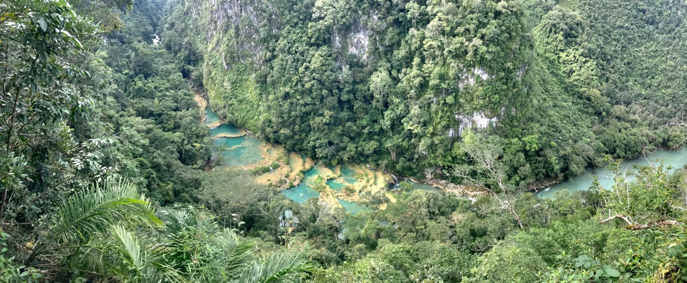 On our second full day the skies cleared up earlier than expected, and a hot sunny brunch inspired us to head to the park. We hired the guide services of the same boy we’d met on our arrival, and pretended we didn’t know who Ted was when he followed us through the entry gates because technically dogs are not permitted. Jen insisted on carrying Nina in the backpack the whole time for exercise, and when the clouds moved over the sun we were grateful because the hike up to the vista point was grueling, steep, and muddy. Ted needed assistance on several sections and looked like a mud-creature from the chest down. We were relieved that the trail down to the pools was less intense.